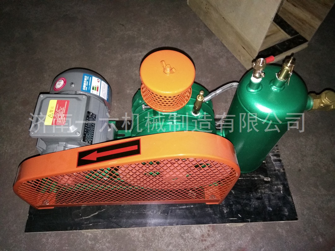 一六回轉式鼓風機結構精巧,主要由下列六部分組成:電機、空氣過濾器、鼓風機本體、空氣室、底座(兼油箱)、滴油嘴。鼓風機靠汽缸內偏置的轉子偏心運轉,并使轉子槽中的葉片之間的容積變化將空氣吸入、壓縮、吐出。在運轉中利用鼓風機的壓力差自動將潤滑送到滴油嘴,滴入汽缸內以減少摩擦及噪聲,同時可保持汽缸內氣體不回流。